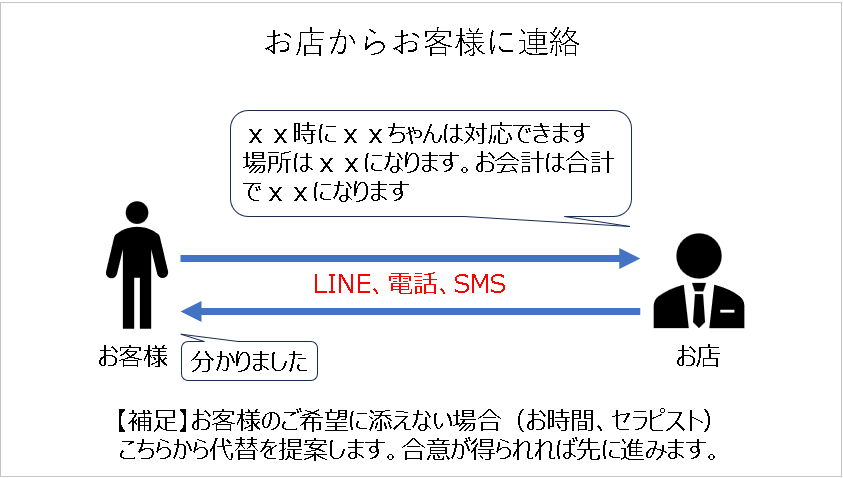 • 延長可能の有無(セラピストのスケジュールに余裕が無い時は、延長はできません)
