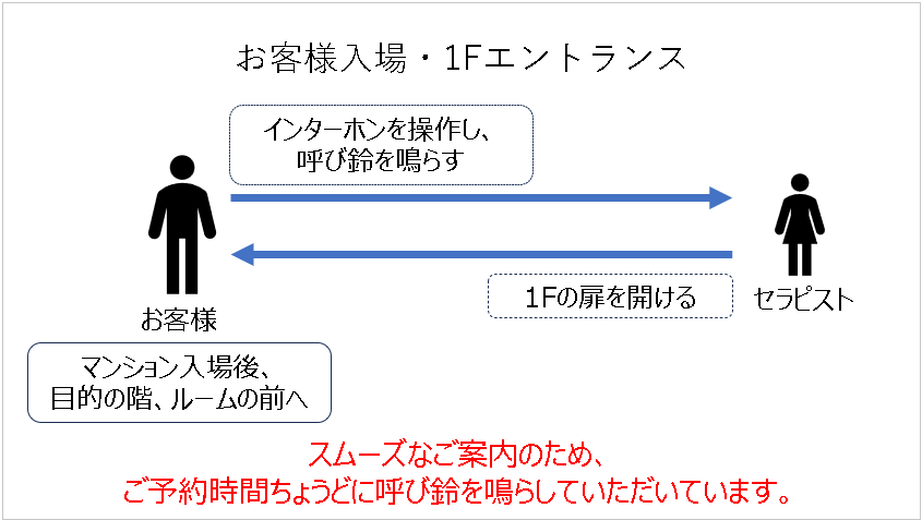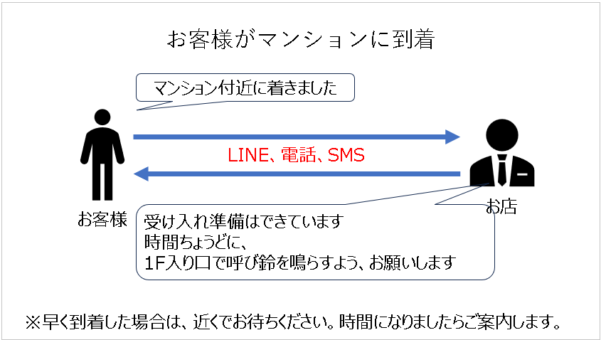 お客様がマンション1Fで呼び鈴を鳴らす(予約時間ちょうど)