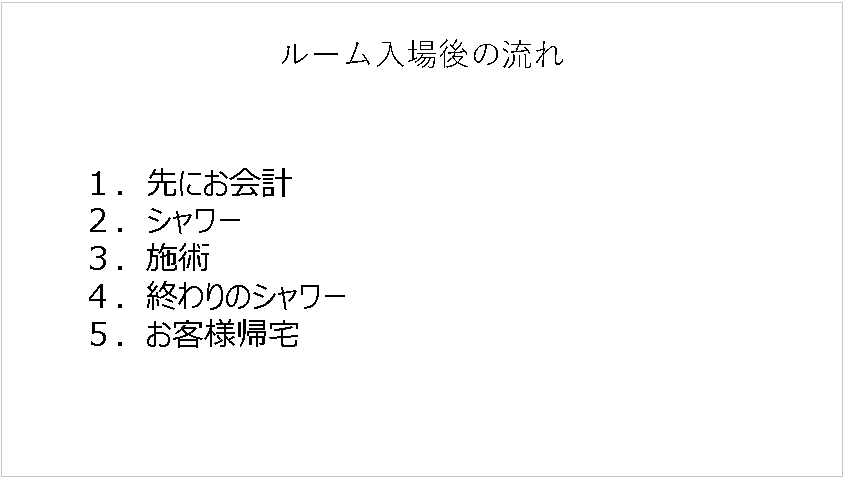 • セラピストの指名(無い場合はフリーでの入場になります)